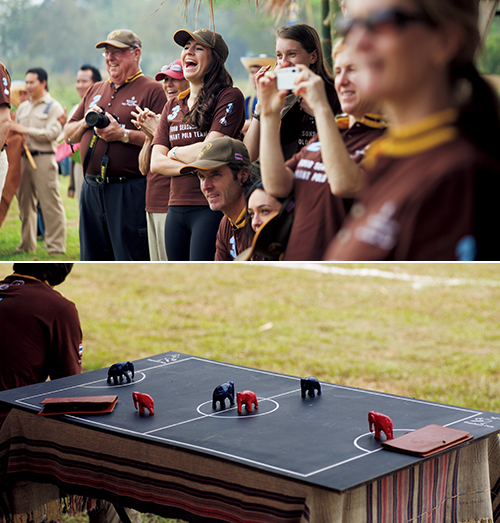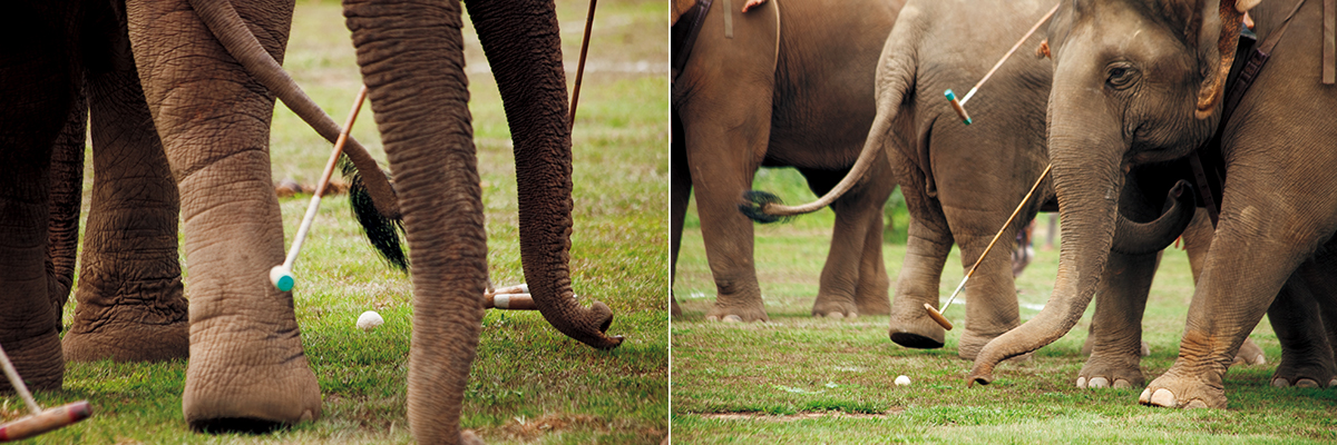 この大会はゴールデン・トライアングル・アジアン・エレファント・ファンデーションという組織との共催で、試合にはこの組織によって管理され、ポロの調教を受けた象が出場する。象は調教レベルが高いだけでなく、ストレス検査をしてポロを嫌がらない象を選んでいるという。「この組織では、人間の労働のために家畜化された後に放置された、行き場のない象を保護しています。ポロは象の保護や環境保全の啓蒙活動の一環として行っています」とディレクターのジョン・ロバーツ語る。